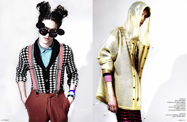 FIASCO magazine. It's a free online magazine, specializing in "unisex fashion, photography, and art." I'm getting turned on just by typing that description. This editorial is so beautiful, yet another sick slam dunk featured on DesignScene. If you haven't already noticed, DesignScene is my favorite blog-of-the-moment. It's everything I desire in fashion photography news. Below is a spread photographed by Jason Mickle, with models Aris Schwabe |Fusion NY| and Michael Kulu |RED|. Fashion Editor: Jessica Bobince.