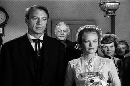 High Noon(1952). Western film directed by Fred Zinnemann. Cast:Gary Cooper and Grace Kelly. The film tells in real time the story of a town marshal forced to face a gang of killers by himself. The screenplay was written by Carl Foreman. Grace Kelly was cast after Stanley Kramer saw her in an off-Broadway play. He arranged a meeting with her and signed her on the spot.